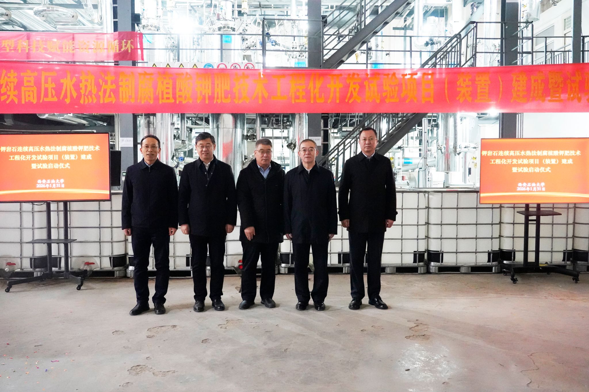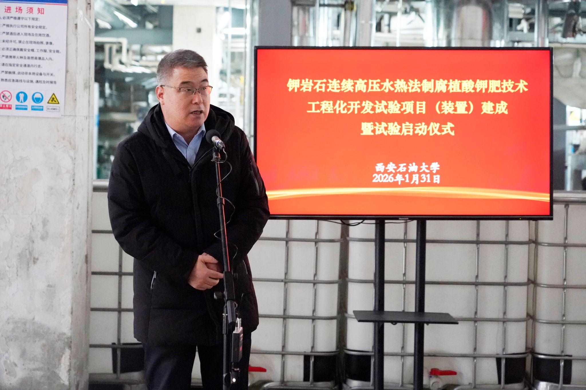 1月31日上午,西安石油大學“鉀巖石連續(xù)高壓水熱法制腐植酸鉀肥技術(shù)工程化開發(fā)試驗項目”建成暨試驗啟動儀式在鄠邑校區(qū)如期舉行。校黨委書記常江、校長王進富、副校長張榮軍出席儀式,項目聯(lián)合科研團隊負責人、承建單位代表以及學校相關(guān)職能處室負責人參加活動,共同見證項目落成投試的重要時刻。儀式由副校長張君濤主持。