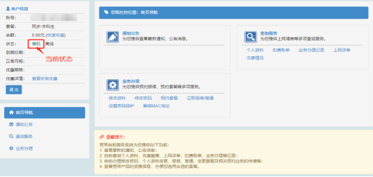 4.因繳費(fèi)或復(fù)通后,系統(tǒng)會(huì)立即執(zhí)行賬號(hào)當(dāng)前的套餐標(biāo)準(zhǔn),因此,狀態(tài)為“停機(jī)”的用戶,一定要先預(yù)約成功再繳費(fèi)或復(fù)通,狀態(tài)為“正常”的用戶,一定要在新套餐生效后再行繳費(fèi),以免引起爭議。