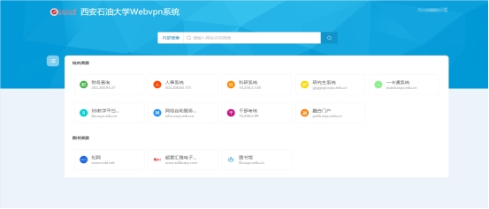 2.輸入統(tǒng)一身份認證用戶名和密碼,即可進入西安石油大學(xué)Webvpn系統(tǒng)資源導(dǎo)航界面,如下圖: