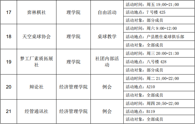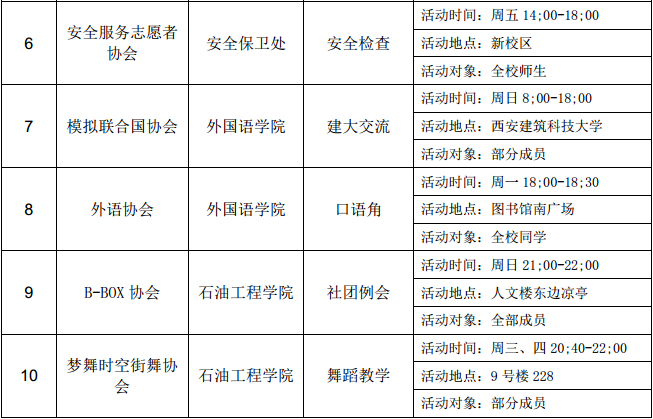 西安石油大學(xué)2016—2017學(xué)年第二學(xué)期第七周社團(tuán)活動(dòng)一覽表