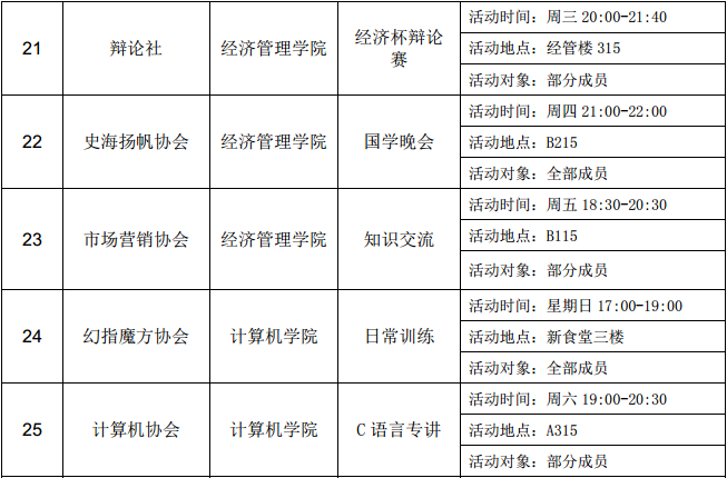 西安石油大學2016—2017學年第二學期第六周社團活動一覽表