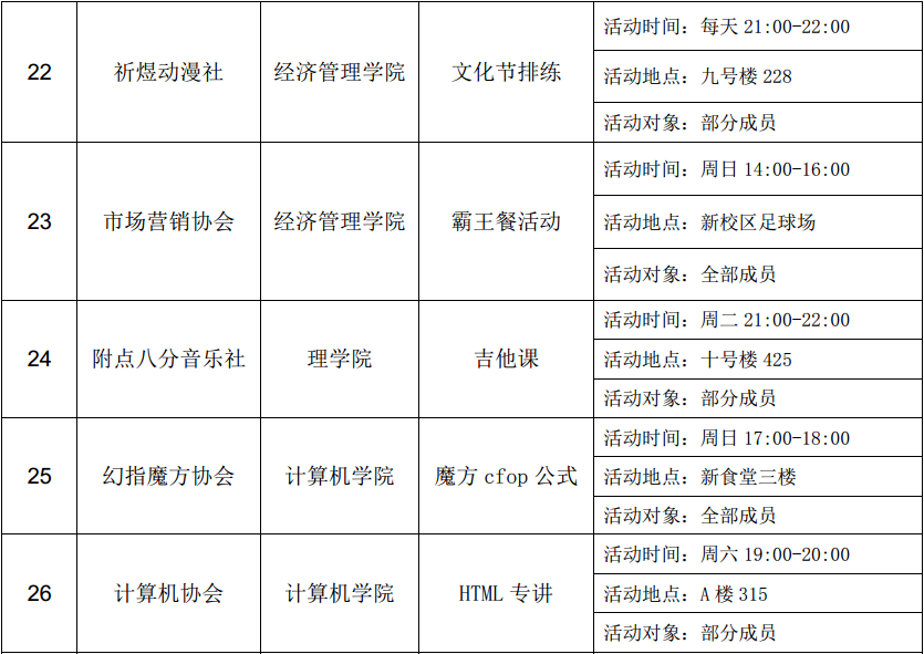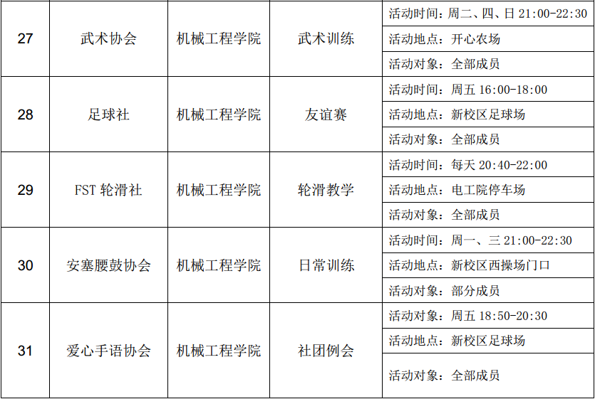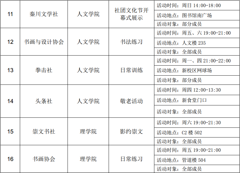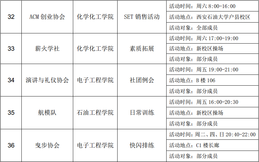 西安石油大學(xué)2016—2017學(xué)年第二學(xué)期第三周社團活動一覽表