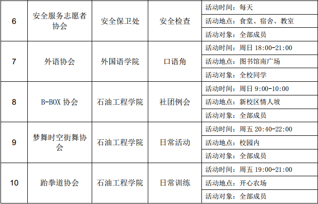 西安石油大學(xué)2016—2017學(xué)年第二學(xué)期第二周社團(tuán)活動(dòng)一覽表