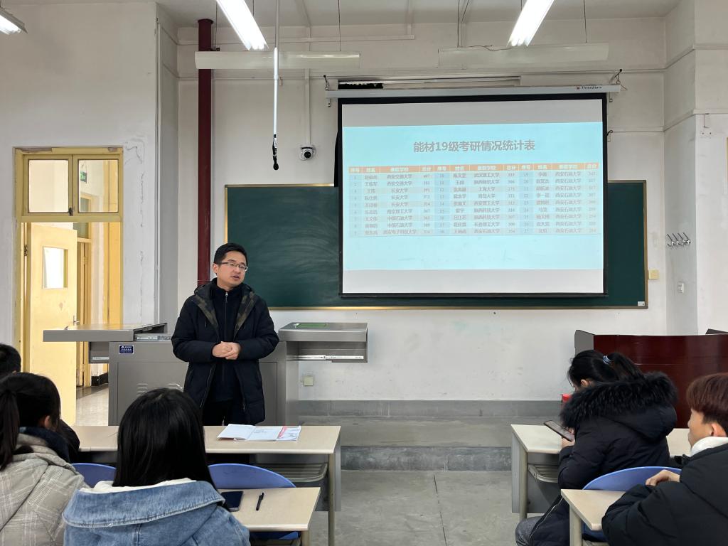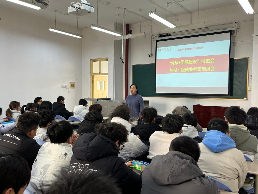 為進(jìn)一步加強(qiáng)學(xué)院學(xué)風(fēng)建設(shè),構(gòu)建黨建+學(xué)風(fēng)協(xié)同育人模式,助推學(xué)院考研就業(yè)工作,1219日上午,新能源學(xué)院黨建+學(xué)風(fēng)建設(shè)推進(jìn)會(huì)暨2021級(jí)考研就業(yè)動(dòng)員大會(huì)在邑校區(qū)博覽樓427室舉行。新能源材料與器件系主任肖美霞、副主任王磊,新能源材料與器件系教工黨支部書(shū)記安敏榮,青年教師何萌,能材2101-2102班班主任王黨會(huì)、李釗,輔導(dǎo)員馬武軍及能材專(zhuān)業(yè)2021級(jí)全體學(xué)生參會(huì),會(huì)議由肖美霞主持。