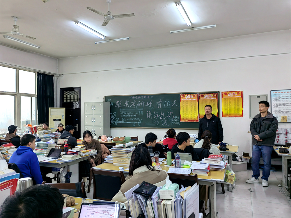 龐遠(yuǎn)代表學(xué)院向正在準(zhǔn)備考研的學(xué)子們表達(dá)了慰問、鼓勵和期望之情,對考研學(xué)生積極準(zhǔn)備、勤奮復(fù)習(xí)的狀態(tài)給與了高度肯定和贊揚(yáng),囑咐同學(xué)們勞逸結(jié)合,堅定理想信念,保持良好的心態(tài),在最后的10天內(nèi)認(rèn)真?zhèn)淇迹瑺幦∽詈蟮膭倮?。劉亭普溫馨提醒同學(xué)們合理安排作息時間,調(diào)整好自己的狀態(tài),注意飲食營養(yǎng)均衡,從容迎接考試。