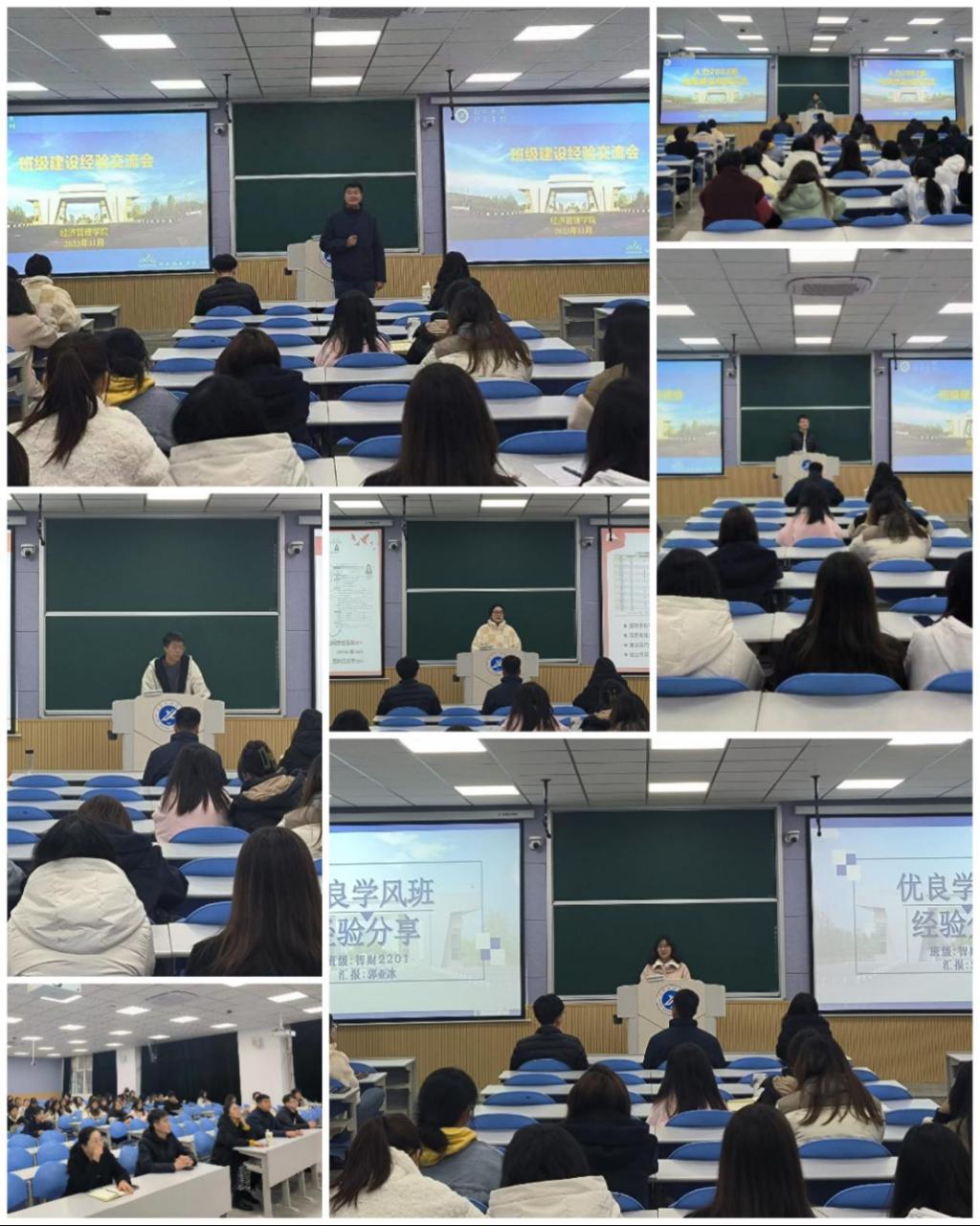 11月15日,經(jīng)濟(jì)管理學(xué)院在博覽樓108智慧大講堂組織開展班級建設(shè)經(jīng)驗(yàn)交流會。本次分享會由鐵人班集體、優(yōu)良學(xué)風(fēng)班候選班級學(xué)生代表作經(jīng)驗(yàn)交流,學(xué)院學(xué)生工作辦公室主任李博文,輔導(dǎo)員劉清、張碩、王業(yè)林,2022級、2023級各班班長團(tuán)支書參會,分享會由2020級輔導(dǎo)員史陽主持。
