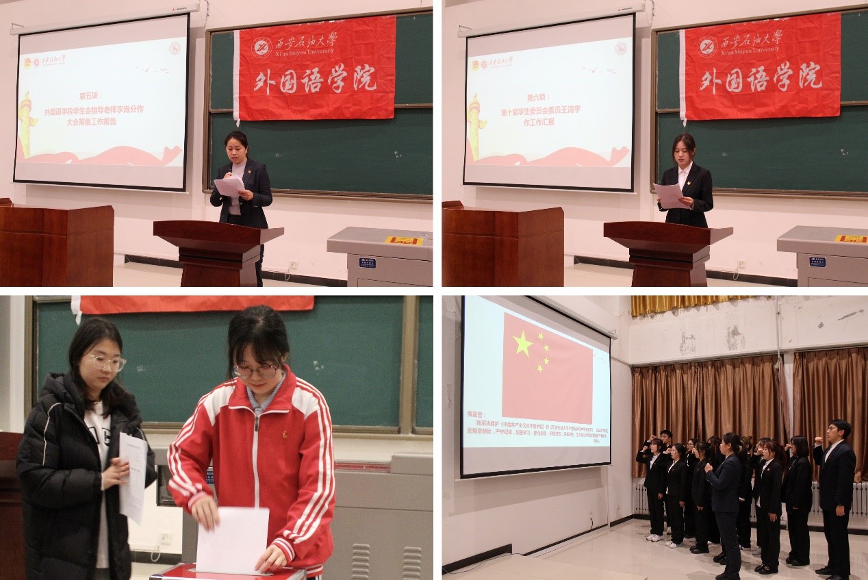 周宇宣讀了校團委、校學(xué)生會《關(guān)于同意召開西安石油大學(xué)外國語學(xué)院第十一次團委屆內(nèi)調(diào)整大會暨學(xué)生代表大會的批復(fù)》。聽取和審議了李青分作的《外國語學(xué)院第十一次團委屆內(nèi)調(diào)整大會暨學(xué)生代表大會籌備工作報告》和第十屆學(xué)生委員會代表王清宇作的《忠誠擔(dān)當(dāng)守初心,履職盡責(zé)作表率,建設(shè)聽黨話、肯奮斗、強引領(lǐng)的學(xué)生會組織》報告。選舉產(chǎn)生了新一屆學(xué)院團委委員和學(xué)生委員會委員,并進行宣誓。