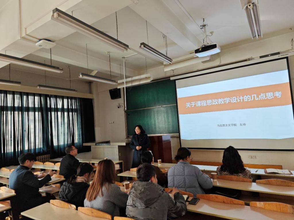 與會(huì)專家左玲副教授首先闡述了思政課程與課程思政的關(guān)系。思政課作為鑄魂育人主渠道,教育引導(dǎo)學(xué)生正確認(rèn)識(shí)世界和中國發(fā)展大勢、正確認(rèn)識(shí)中國特色、正確認(rèn)識(shí)時(shí)代責(zé)任和歷史使命。課程思政則是將知識(shí)傳授與價(jià)值引導(dǎo)相結(jié)合,讓各類課程與思想政治理論課同向同行,形成協(xié)同效應(yīng),實(shí)現(xiàn)“如鹽入水”的育人效果。隨后左玲副教授講授了課程思政的教學(xué)設(shè)計(jì)技巧,要做到引題有張力、破題有導(dǎo)向、解體有邏輯、扣題有亮點(diǎn)等。最后左玲副教授結(jié)合自身參加“課程思政大練兵”的實(shí)踐經(jīng)歷,與老師們分享了心得體會(huì)。