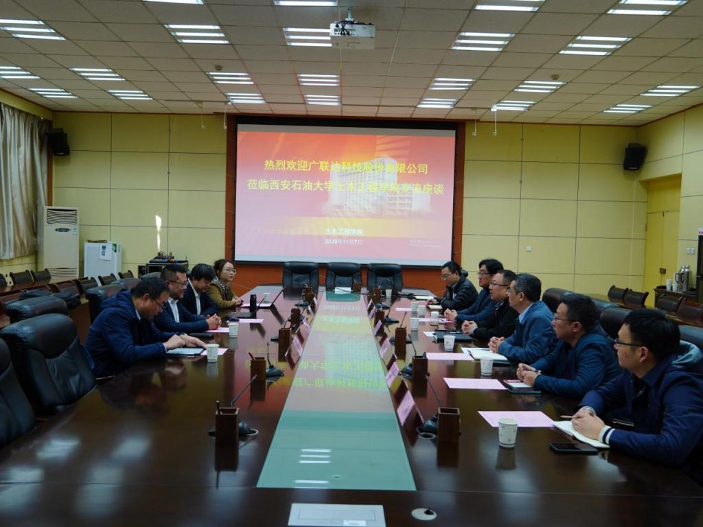 陳濤書(shū)記代表土木工程學(xué)院對(duì)雷鵬副總裁一行來(lái)訪表示熱烈歡迎,并邀請(qǐng)雙方共同觀看西安石油大學(xué)宣傳片。李俊亭副院長(zhǎng)介紹了學(xué)校基本情況,并就土木工程學(xué)院學(xué)科專業(yè)設(shè)置、師資隊(duì)伍、人才培養(yǎng)特色、未來(lái)發(fā)展方向等方面進(jìn)行了介紹。他表示,學(xué)院工程管理專業(yè)自創(chuàng)辦之初就與廣聯(lián)達(dá)公司開(kāi)展了相關(guān)業(yè)務(wù)合作,雙方聯(lián)系緊密,廣聯(lián)達(dá)近年來(lái)深耕數(shù)字建筑、智能建造的發(fā)展定位為雙方提供了更廣闊的合作空間,希望以本次交流為契機(jī)進(jìn)一步創(chuàng)新合作機(jī)制,在雙方產(chǎn)教融合業(yè)務(wù)中充分發(fā)揮雙方自身優(yōu)勢(shì),在專業(yè)建設(shè)、本科生就業(yè)實(shí)習(xí)基地建設(shè)、校企聯(lián)合參與學(xué)科競(jìng)賽、研究生聯(lián)合培養(yǎng)基地建設(shè)、實(shí)驗(yàn)室共建等方面深化合作,實(shí)現(xiàn)互利共贏。