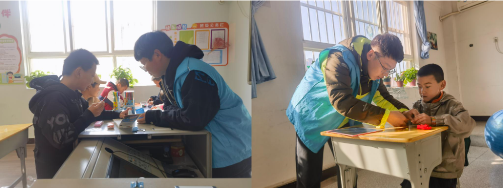 志愿者們陪著孩子們一起看書、畫畫,和孩子們玩起了“剪刀石頭布”和“我比手語你來猜”的游戲,一時間,整個教室充滿了孩子們和志愿者們的歡聲笑語,其樂融融。通過游戲互動,也拉近了志愿者與孩子們心與心的距離。志愿者們說:“小朋友是活潑可愛的小天使,和他們一起互動、學習感覺非常開心。我希望自己能夠更加深入?yún)⑴c到特殊教育志愿服務活動中,帶給小朋友更多快樂!”