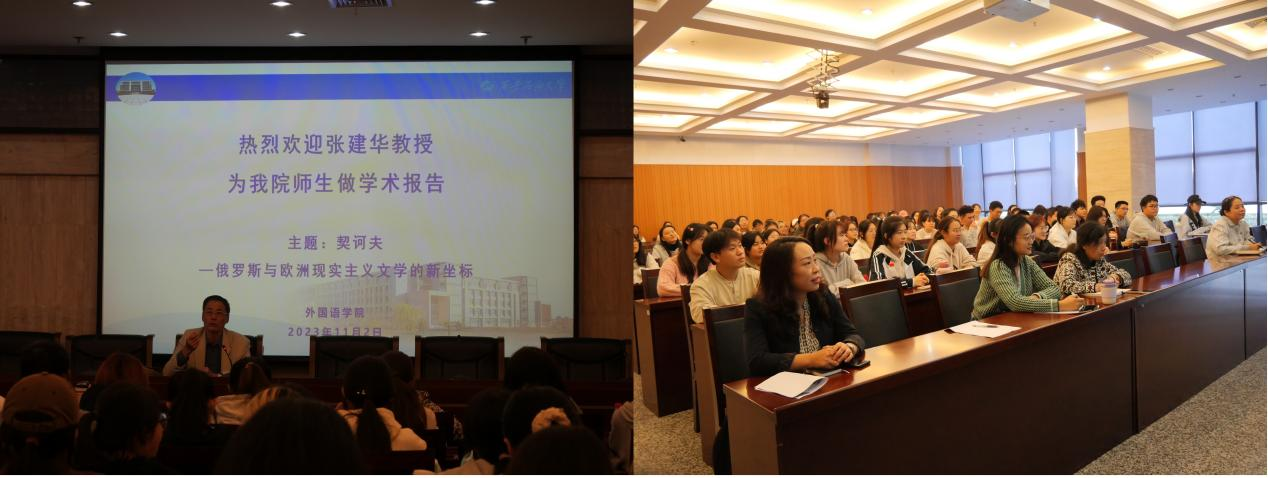 為提升師生專業(yè)素養(yǎng),拓展師生學術(shù)視野,進一步促進學院學科建設(shè)與發(fā)展。11月2日下午,外國語學院特別邀請北京外國語大學二級教授、博士生導師張建華教授開展了題為“契訶夫—俄羅斯與歐洲現(xiàn)實主義文學的新坐標”的學術(shù)講座。外國語學院俄語系師生共100余人聆聽了本次講座。講座由副院長劉輝主持。