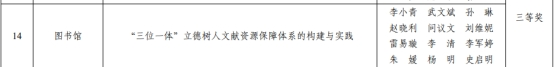 日前,學(xué)校第九屆校園文化建設(shè)優(yōu)秀成果評(píng)選結(jié)果揭曉,圖書館再獲佳績(jī)?!丁?span lang="EN-US">1+2+3+4+N”閱讀推廣文化育人體系的構(gòu)建與實(shí)踐》成果榮獲創(chuàng)新獎(jiǎng),《中華傳統(tǒng)文化閱讀推廣的育人創(chuàng)新實(shí)踐》成果榮獲二等獎(jiǎng),《“三位一體”立德樹(shù)人文獻(xiàn)資源保障體系的構(gòu)建與實(shí)踐》成果榮獲三等獎(jiǎng),圖書館還被授予了“優(yōu)秀組織獎(jiǎng)”。