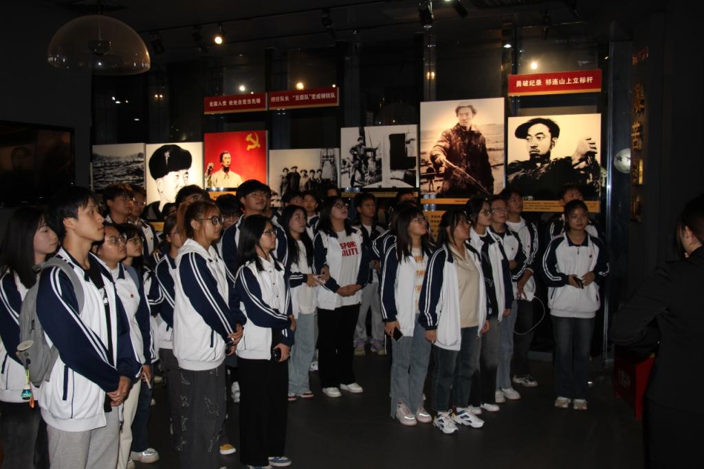 在“鐵人”王進(jìn)喜紀(jì)念館,任仰老師向大家介紹了鐵人王進(jìn)喜的生平故事,希望大家在參觀學(xué)習(xí)中再次感悟王進(jìn)喜同志的英雄事跡和鐵人精神的豐富內(nèi)涵。跟隨講解員的講解,同學(xué)們?cè)诩o(jì)念館中看到了一幅幅珍貴的歷史照片、一件件烙印著歲月痕跡的實(shí)物、一幕幕再現(xiàn)當(dāng)年生活的場(chǎng)景,重溫鐵人故事,深刻感悟鐵人精神的偉大和崇高。