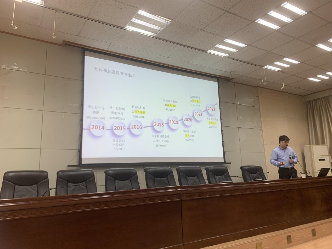 報告中,臧雷振教授結(jié)合自己申請國家社科基金項目的心得與感悟,對國家社科基金的立項狀況、主題分布、發(fā)展態(tài)勢進行分析,從選題依據(jù)、思路方法、創(chuàng)新之處、學(xué)術(shù)價值、重點難點、研究基礎(chǔ)、參考文獻等逐條進行了經(jīng)驗介紹和心得分享。他認為,國家社科基金申報應(yīng)聚焦課題指南,堅持以重大理論和現(xiàn)實問題為主攻方向,推動學(xué)科體系、學(xué)術(shù)體系、話語體系建設(shè)。報告后,臧雷振教授與老師們圍繞申報中的具體問題進行了互動交流,并對部分老師的申報書從選題精細度、研究團隊組建和研究框架布局等方面進行了詳細的分析與指導(dǎo)。