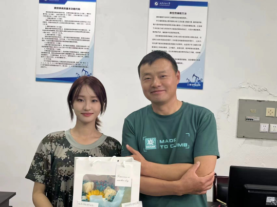 機(jī)械工程學(xué)院學(xué)子以實(shí)際的行動(dòng)讓辛勤耕耘的老師體會(huì)到學(xué)生們的感恩之情,以真誠的行動(dòng)表達(dá)對(duì)老師衷心的感謝及節(jié)日的祝福。學(xué)生們紛紛送上鮮艷的花朵,獻(xiàn)上手寫的賀卡,一聲聲祝福承載了他們對(duì)老師們深深的謝意,感謝老師們的諄諄教誨,感謝老師們的悉心指導(dǎo)。當(dāng)學(xué)生代表把鮮花送到老師手里并送上“老師,教師節(jié)快樂!”的祝福時(shí),任課教師臉上洋溢著幸福的笑容。