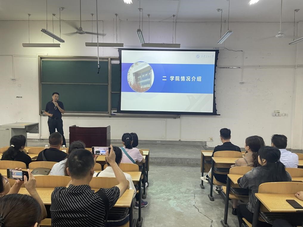 王業(yè)青介紹了學(xué)院學(xué)生工作基本情況,就學(xué)校學(xué)生日常教育管理制度、就業(yè)工作、考取碩士、社會實踐和文體活動等方面進(jìn)行講解。幫助家長明晰學(xué)生大學(xué)四年學(xué)習(xí)任務(wù)、實踐目標(biāo),希望建立好家校聯(lián)動機(jī)制,共同培養(yǎng)德智體美勞全面發(fā)展的社會主義建設(shè)者和接班人。