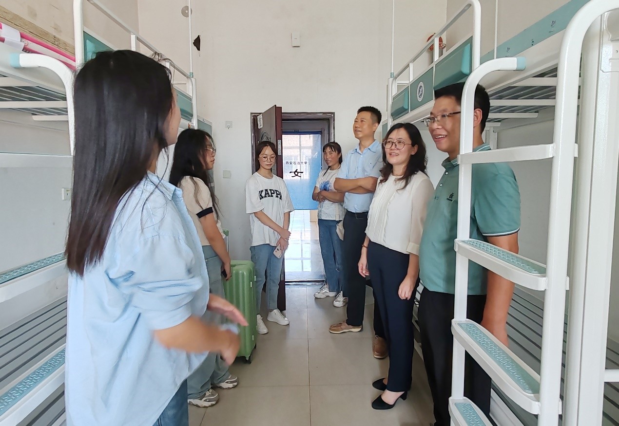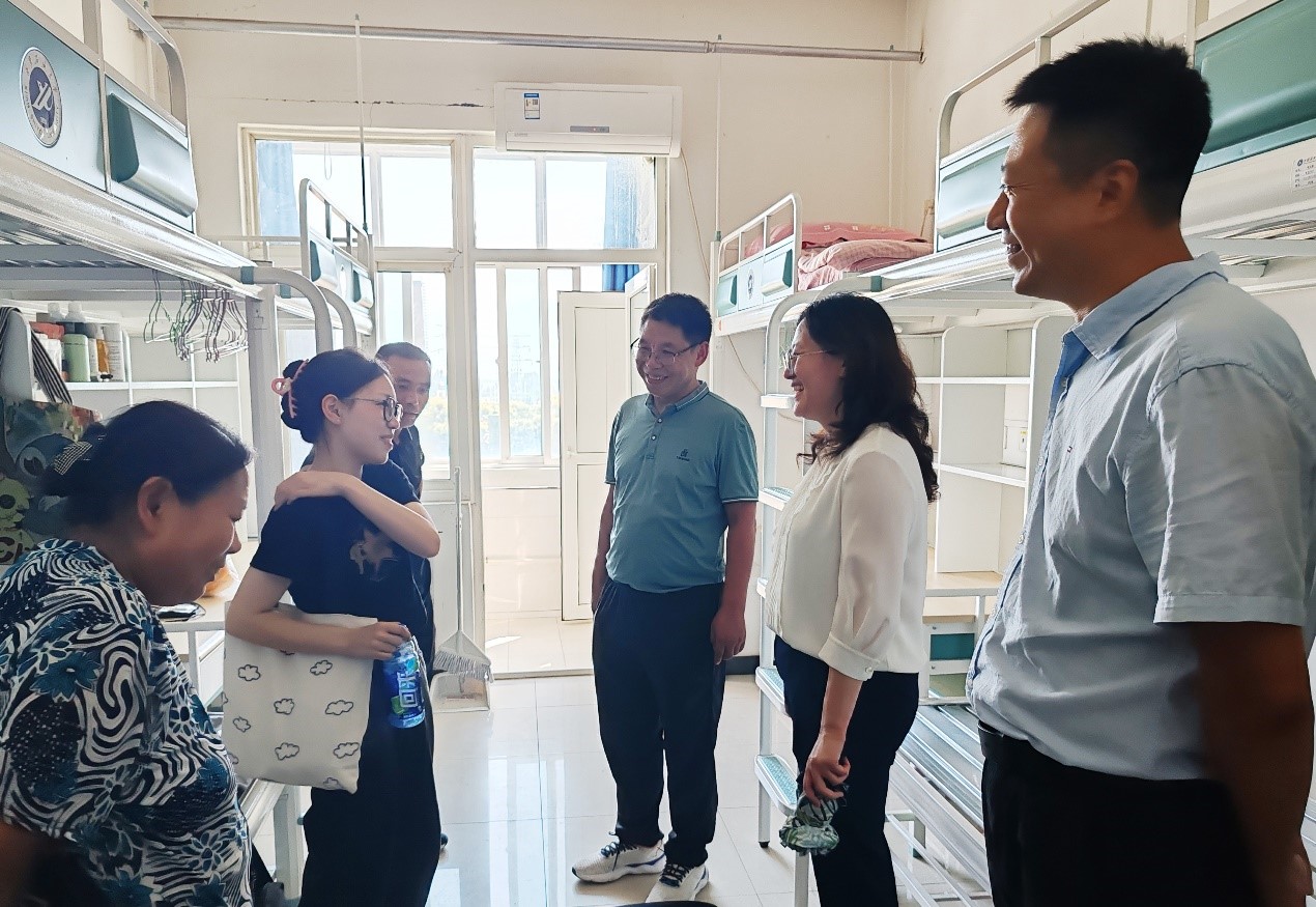 在迎新現(xiàn)場,學院領(lǐng)導們詳細了解新生報到情況,慰問現(xiàn)場工作人員和學生志愿者。在走訪宿舍過程中,分別與新生及家長進行親切交流,了解同學們來校后的感受和對學校的印象,以及每位新生的名字、家鄉(xiāng)籍貫、專業(yè)等信息,詳細詢問同學們在衣、食、住、行等方面的問題,聽取新生對學院迎新工作的感受。叮囑同學們要盡快調(diào)整好學習生活節(jié)奏,完成身份、角色轉(zhuǎn)變,養(yǎng)成良好生活習慣,以積極良好的狀態(tài)迎接大學學習生活。鼓勵同學們提前做好大學期間的學習規(guī)劃,勇于嘗試新事物,積極參加各種活動和比賽,腳踏實地,為將來的發(fā)展打下扎實的基礎。