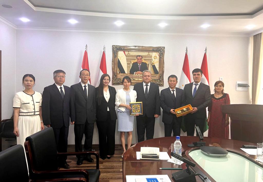 拜訪塔吉克斯坦教科部,受到塔吉克斯坦教科部第一副部長朱奈德·賈姆希德·哈比布洛(右四)的接待