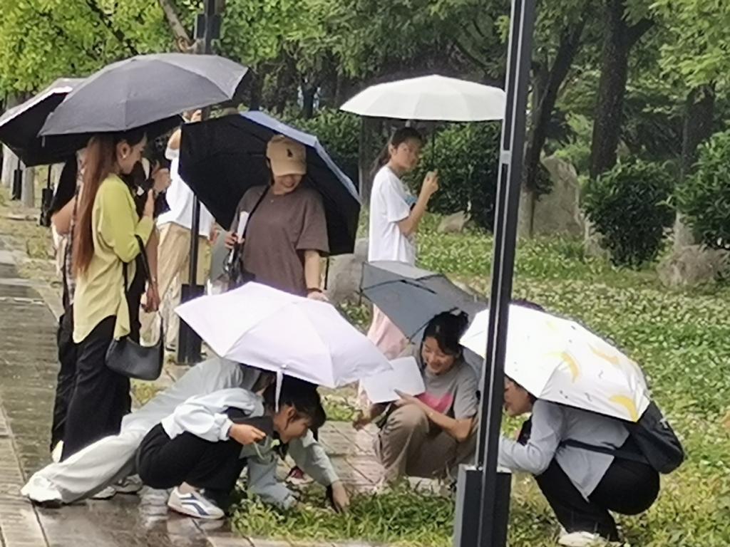 下午同學(xué)們在圖書館前集合,孫婷老師講解活動內(nèi)容,按班分組,布置任務(wù)。隨后,大家在組長的帶領(lǐng)下分區(qū)撿拾校園內(nèi)的垃圾。撿拾過程中同學(xué)們不僅要拾起這些散落的塑料袋、包裝盒和生活垃圾,還要思考垃圾的來源。用雙手凈化校園的勞動環(huán)節(jié)令大家深刻地認(rèn)識到愛護(hù)環(huán)境人人有責(zé),共建美好校園必須從“我”做起。完成垃圾撿拾任務(wù)后,同學(xué)們開始認(rèn)領(lǐng)植物。校園里的花草、樹木和鳥蟲都是被認(rèn)領(lǐng)對象,大家仔細(xì)觀察后認(rèn)真選出自己認(rèn)領(lǐng)的植物。隨后,在小組分享環(huán)節(jié),每位同學(xué)向大家展示自己認(rèn)領(lǐng)的植物,與大家分享認(rèn)領(lǐng)原因,分享自己的感悟。認(rèn)領(lǐng)與分享環(huán)節(jié)不僅增進(jìn)了同學(xué)們彼此之間的了解和交流,還引導(dǎo)大家思考“我與萬物”之間的關(guān)系。