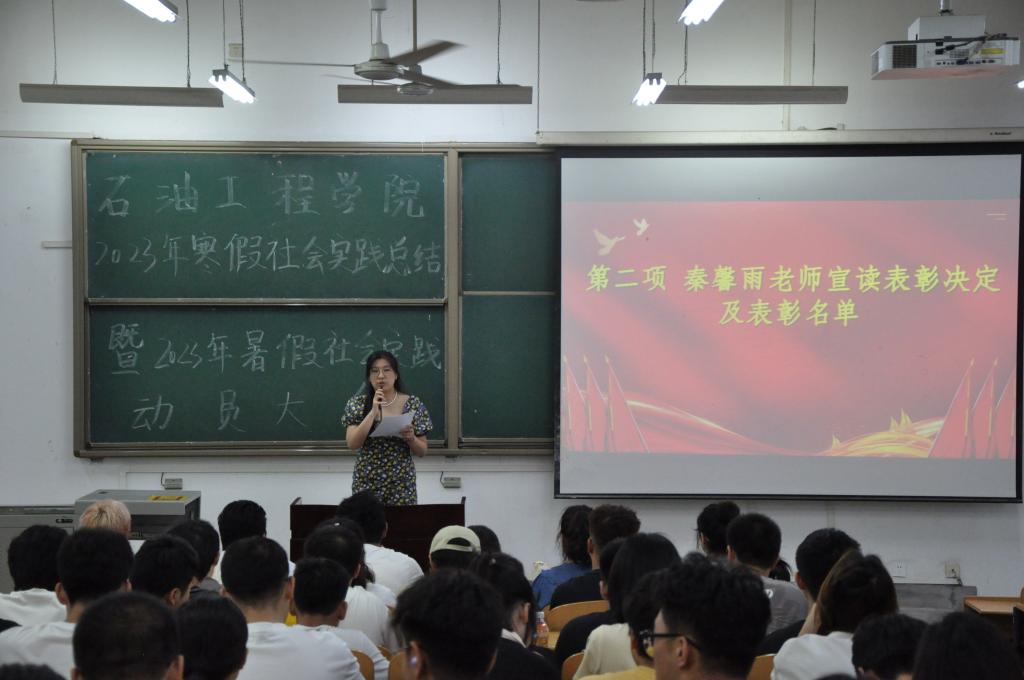 大學(xué)生假期社會(huì)實(shí)踐活動(dòng)作為高校實(shí)踐育人的重要組成部分,豐富和深化大學(xué)生思想政治教育,使大學(xué)生能夠在理論和實(shí)踐相結(jié)合的過程中增長(zhǎng)才干、健康成長(zhǎng)。為扎實(shí)推進(jìn)2023年暑期社會(huì)實(shí)踐工作,激發(fā)學(xué)生參與熱情,石油工程學(xué)院于6月16日下午在博思樓舉行2023年寒假社會(huì)實(shí)踐總結(jié)表彰暨2023年暑假社會(huì)實(shí)踐動(dòng)員大會(huì),石油工程學(xué)院2021級(jí)輔導(dǎo)員兼團(tuán)委、學(xué)生會(huì)指導(dǎo)老師秦馨雨,2022級(jí)輔導(dǎo)員聶康晨,2023年寒假實(shí)踐獲獎(jiǎng)學(xué)生等百余人出席本次大會(huì)。