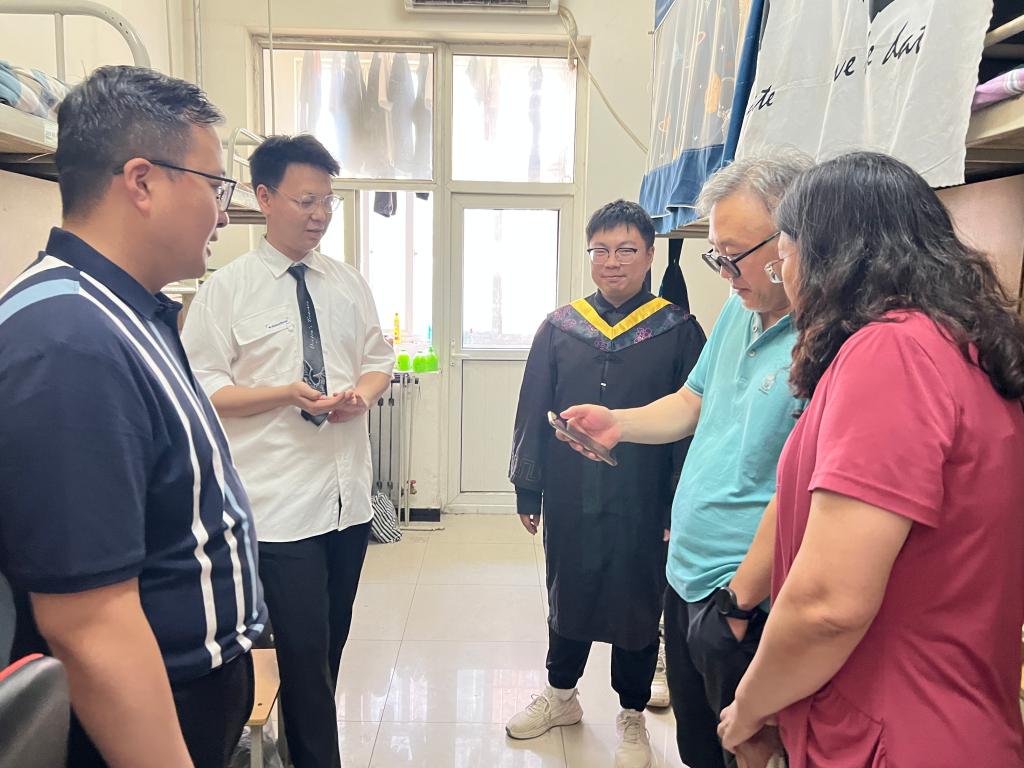 “準備就業(yè)還是升學?”“簽了哪個單位?”“畢業(yè)規(guī)劃如何?”“生活中有沒有困難?”,在走訪畢業(yè)生寢室過程中,學院領導悉心詢問了畢業(yè)生的近況,與他們就畢業(yè)去向、在校情況和離校安排等多個方面進行了面對面地深入交流,并根據(jù)每個人的具體情況提出針對性建議。走進16號樓104寢室,看到在門上方的墻上張貼著“好學力行,自強不息”“天道酬勤,厚德載物”這幾個大字,學院領導對該寢室的學風給予了高度評價。當了解到該寢室全體同學都有了穩(wěn)定的畢業(yè)去向,其中宋士龍和勇志華同學都以優(yōu)異的成績繼續(xù)深造,呂杰和馮仁同學成功簽約化工類國有企業(yè),學院領導肯定了同學們的努力,并勉勵畢業(yè)生在新起點提前做好規(guī)劃,在實踐中不斷更新知識,謹記學校校風校訓,以“為人誠實、基礎扎實、作風樸實、工作踏實、開拓創(chuàng)新”的標準繼續(xù)砥礪前行。