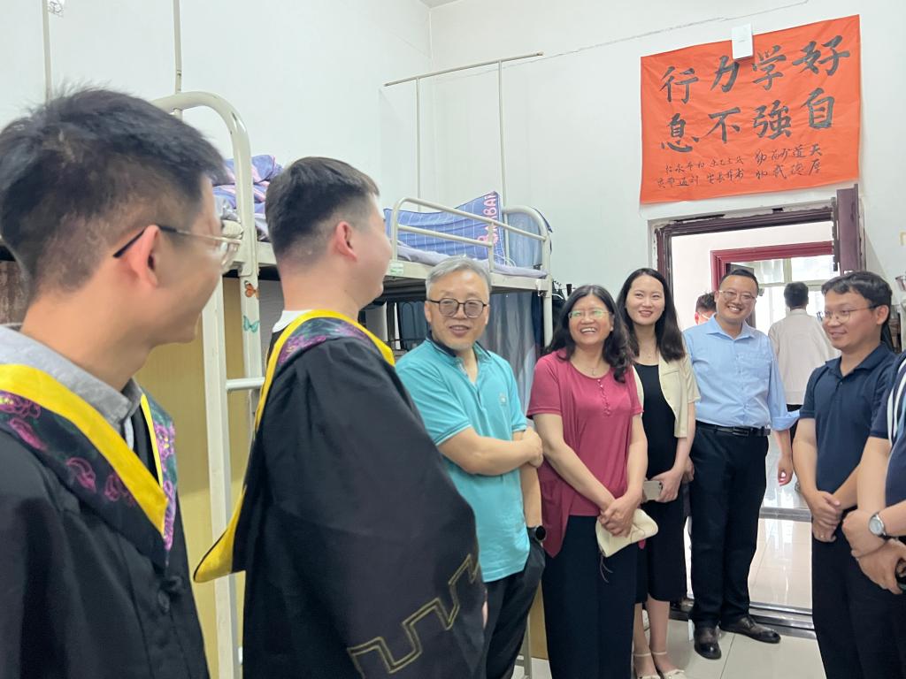 在2023屆畢業(yè)生即將離校之際,6月13日上午,化學化工學院黨委書記司馬文龍、院長王文珍、黨委副書記祁帆一行深入學生宿舍,看望慰問即將離校的學院2023屆畢業(yè)生,與同學們依依話別并送上深切關懷和美好祝愿。