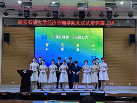 為打造學(xué)院學(xué)生文化活動(dòng)“一院一品”精品項(xiàng)目,進(jìn)一步提升禮儀隊(duì)專(zhuān)業(yè)素養(yǎng),6月13日,經(jīng)濟(jì)管理學(xué)院在鄠邑校區(qū)崇文樓就業(yè)指導(dǎo)中心多功能廳舉辦禮儀隊(duì)第二次業(yè)務(wù)培訓(xùn)。本次培訓(xùn)邀請(qǐng)外國(guó)語(yǔ)學(xué)院張帆老師擔(dān)任主講,禮儀隊(duì)全體成員參加了本次培訓(xùn)。