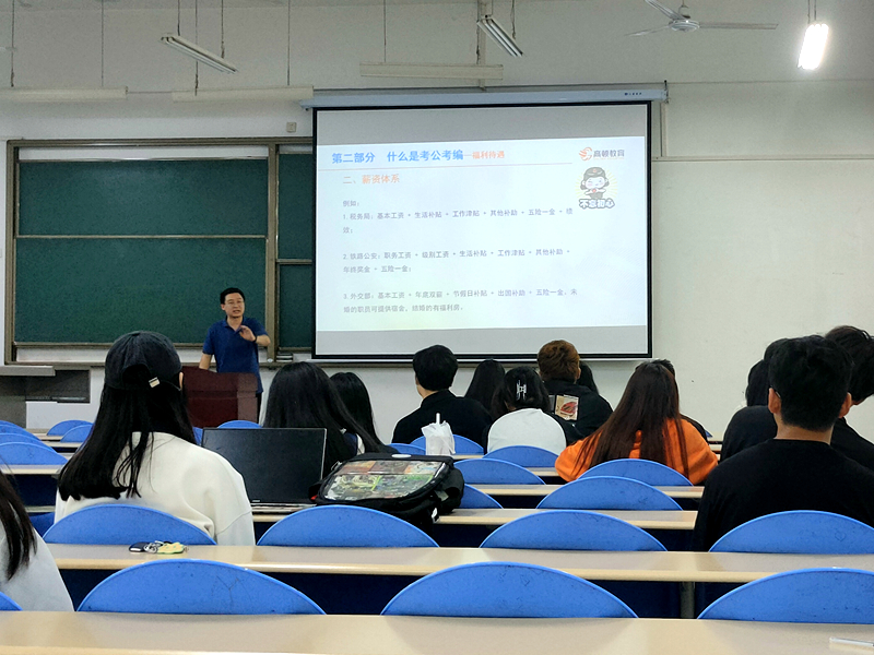 張彬從考試內(nèi)容、考試難度、考試形式、備考方式及時(shí)間安排、面試技巧等方面向參會(huì)學(xué)生就國(guó)家公務(wù)員考試和陜西省公務(wù)員考試進(jìn)行了詳細(xì)解讀,使同學(xué)們對(duì)公務(wù)員考試有了更深層次的認(rèn)知,從而能更有針對(duì)性的進(jìn)行備考。