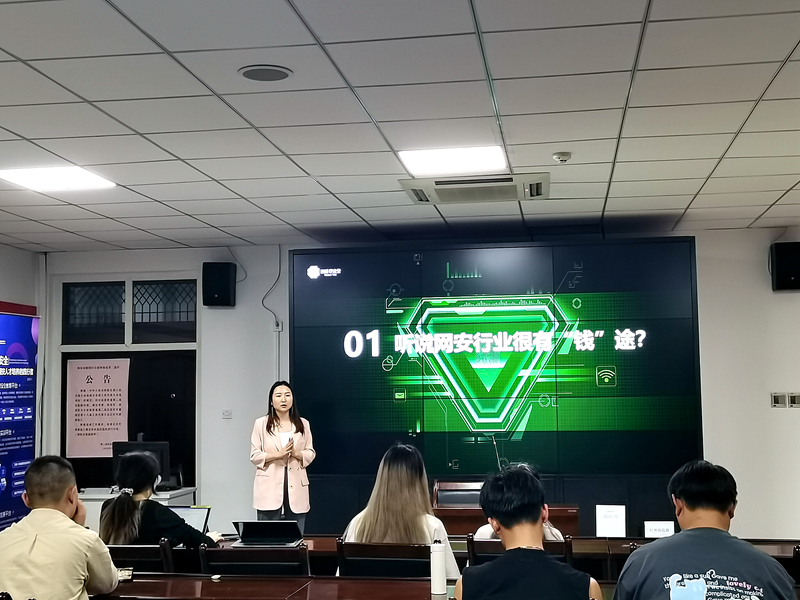 文倩雯和鄧?yán)杌诂F(xiàn)階段的招聘環(huán)境,結(jié)合自身經(jīng)歷向參會(huì)學(xué)生介紹了網(wǎng)絡(luò)安全工程師的基本從業(yè)條件及發(fā)展前景,幫助參會(huì)學(xué)生了解企業(yè)用人需求,對(duì)標(biāo)個(gè)人能力更好的樹(shù)立學(xué)習(xí)目標(biāo),從而做好踏入職場(chǎng)的準(zhǔn)備。