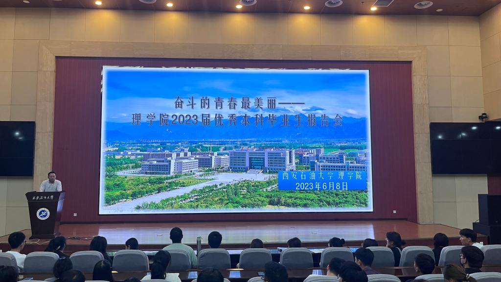 6月8日下午,理學院在鄠邑校區(qū)弘石報告廳舉辦了“奮斗的青春最美麗”——2023屆優(yōu)秀畢業(yè)生報告會。報告會邀請理學院2023屆優(yōu)秀畢業(yè)生齊佳敏、馬客非、董善、虎志強、付泓元、顧子健、石文武、馮佳龍、朱英杰等九位同學主講,學院四百余名本科生參加。報告會由理學院黨委副書記馬小剛主持。