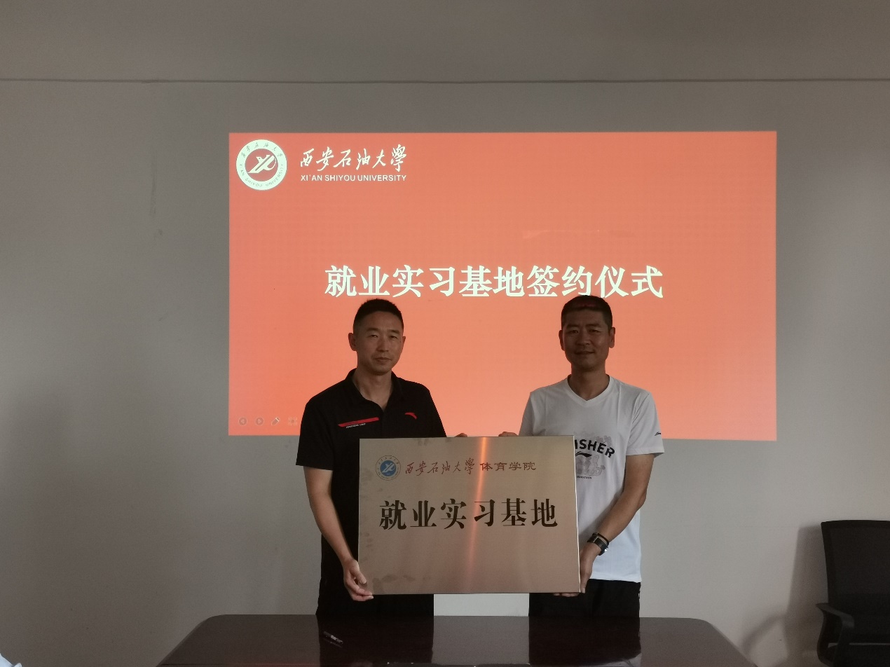 會談結(jié)束,雙方就建立學(xué)生實(shí)習(xí)就業(yè)基地達(dá)成一致,簽署了實(shí)習(xí)就業(yè)基地協(xié)議,李壽邦院長向無錫匯跑體育有限公司授牌。