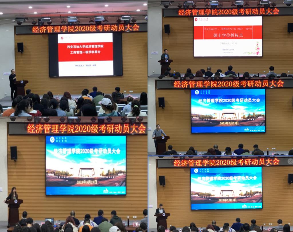 為進(jìn)一步促進(jìn)學(xué)風(fēng)建設(shè),營造濃厚學(xué)習(xí)氛圍,充分調(diào)動(dòng)學(xué)生的考研積極性,提高考研錄取率,5月25日,經(jīng)濟(jì)管理學(xué)院在鄠邑校區(qū)就業(yè)指導(dǎo)中心多功能廳舉辦2020級(jí)考研動(dòng)員大會(huì)。經(jīng)濟(jì)管理學(xué)院副院長李春霄,工商管理學(xué)科負(fù)責(zé)人裴旭東,管理科學(xué)與工程學(xué)科負(fù)責(zé)人侯珂,會(huì)計(jì)學(xué)系教授楊惠賢,企業(yè)管理系主任楊晶,管理科學(xué)與工程系主任趙需要,學(xué)生工作辦公室主任李博文,2020級(jí)輔導(dǎo)員張碩及全體意向考研學(xué)生參加會(huì)議,會(huì)議由經(jīng)濟(jì)管理學(xué)院黨委副書記王剛主持。