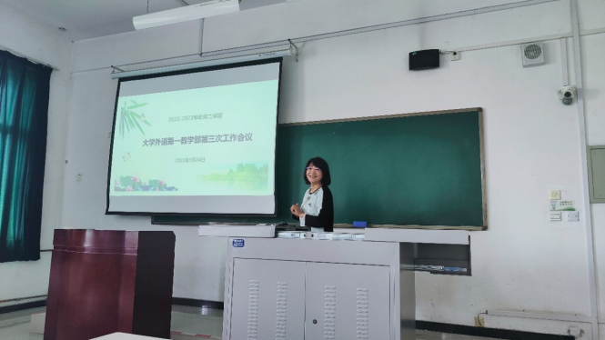 在教學(xué)工作會(huì)議環(huán)節(jié),大學(xué)外語(yǔ)第一教學(xué)部主任李雪梅對(duì)近期教學(xué)工作進(jìn)行總結(jié)和進(jìn)一步安排,并對(duì)新一輪本科教育教學(xué)審核評(píng)估進(jìn)行部署安排。會(huì)議還進(jìn)行了系部2023年度優(yōu)秀教師和師德先進(jìn)個(gè)人評(píng)選及推薦工作。