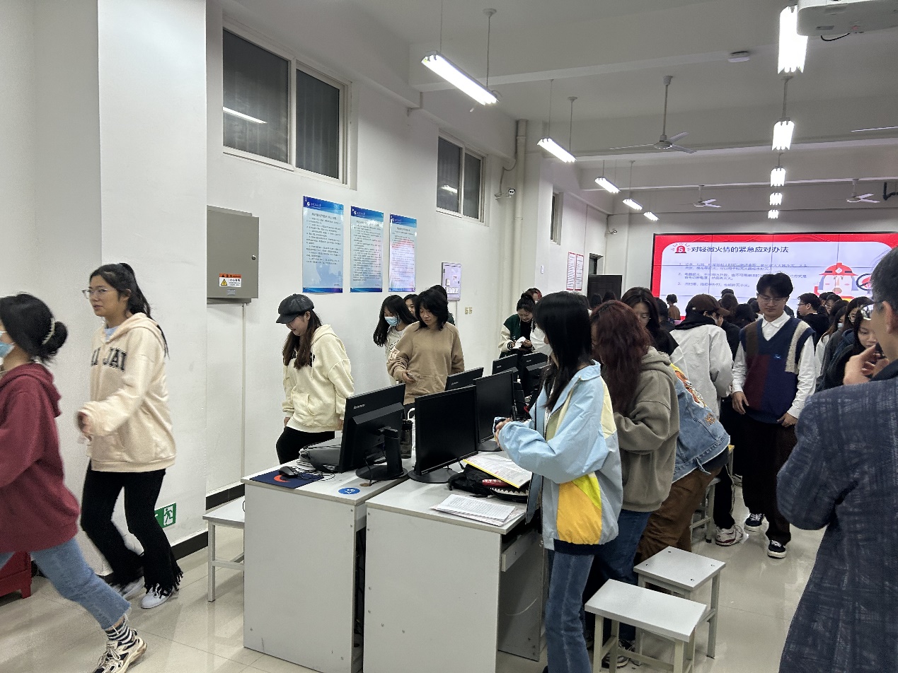 4月27日,人文學(xué)院傳播技術(shù)與設(shè)計(jì)實(shí)驗(yàn)室舉行了消防安全教育與應(yīng)急演練。此次消防安全教育結(jié)合人文學(xué)院實(shí)驗(yàn)室特征,主要講解用電安全及注意事項(xiàng)、火災(zāi)逃生、應(yīng)急處置、滅火器使用方法。應(yīng)急演練環(huán)節(jié),組織學(xué)生開展了火災(zāi)現(xiàn)場(chǎng)疏散逃生。