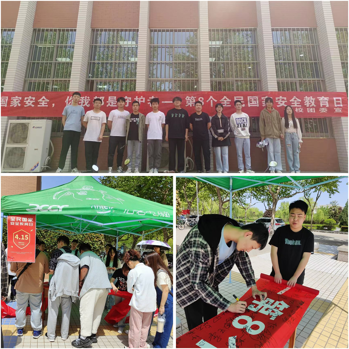 2023年4月15日是第八個(gè)全民國家安全教育日,為深入貫徹習(xí)近平總書記總體國家安全觀,增強(qiáng)全民國家安全意識和素養(yǎng),夯實(shí)以新安全格局保障新發(fā)展格局的社會基礎(chǔ),推動全民國家安全教育日宣傳,校團(tuán)委組織開展了國家安全教育主題活動,通過微信平臺推送、制作宣傳海報(bào)、懸掛宣傳條幅、設(shè)置國家安全教育主題宣傳點(diǎn)、條幅簽名等形式,大力開展國家安全宣傳教育。