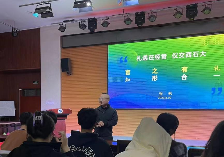 為打造學(xué)院學(xué)生文化活動“一院一品”精品項目,進(jìn)一步提高禮儀隊專業(yè)水平,3月30日,經(jīng)濟(jì)管理學(xué)院在鄠邑校區(qū)崇文樓118室舉辦學(xué)院禮儀隊成立啟動儀式暨第一次業(yè)務(wù)培訓(xùn)會。本次培訓(xùn)邀請外國語學(xué)院張帆老師擔(dān)任主講,經(jīng)濟(jì)管理學(xué)院黨委副書記王剛,學(xué)生工作辦公室主任李博文及團(tuán)學(xué)指導(dǎo)老師曹萌出席了啟動儀式,學(xué)院禮儀隊全體成員參加了本次培訓(xùn)。