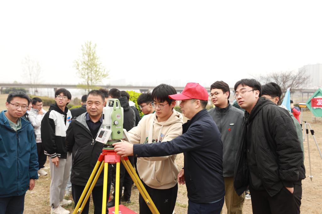 3月18日下午,中鐵一局五公司專家白芝勇、周建軍、譙生有為來訪師生和參賽選手親自演示測量儀式的操作流程,結合自身多年實踐經驗,專家們重點講解了儀器使用和操作過程中的注意事項,受邀師生進行了實操訓練。
