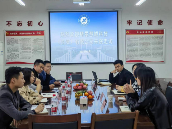 王瑩副書記首先對精景慧城(西安)科技有限公司蒞臨學院洽談合作表示熱烈歡迎,并介紹了學院的學生概況、專業(yè)分布、社會實踐等情況。隨后劉群總經理介紹了公司的主營范圍、產品優(yōu)勢及發(fā)展規(guī)劃,并表示歡迎學生在校期間來公司開展社會實踐活動。雙方就共建社會實踐基地、實習實訓基地及畢業(yè)生就業(yè)實習等方面進行深度洽談。