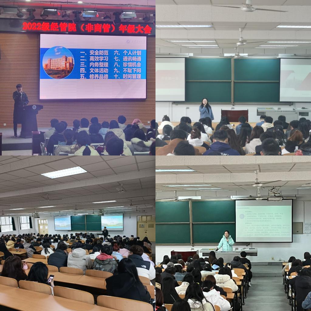 二是統(tǒng)一思想明方向,同心協(xié)力樹新風。為更好地推進新學期學生教育管理工作落到實處,及時了解學生思想動態(tài),經(jīng)濟管理學院于開學第一周召開學生年級大會,會議由各年級輔導員主持,會議內容包括日常管理、誠信教育、學風建設、生涯規(guī)劃等方面,督促學生遵守日常管理要求,及時調整學習狀態(tài),合理制定復習方案,誠信從容參加考試,展現(xiàn)經(jīng)管學子學風嚴謹、學業(yè)扎實、態(tài)度認真的良好風貌。