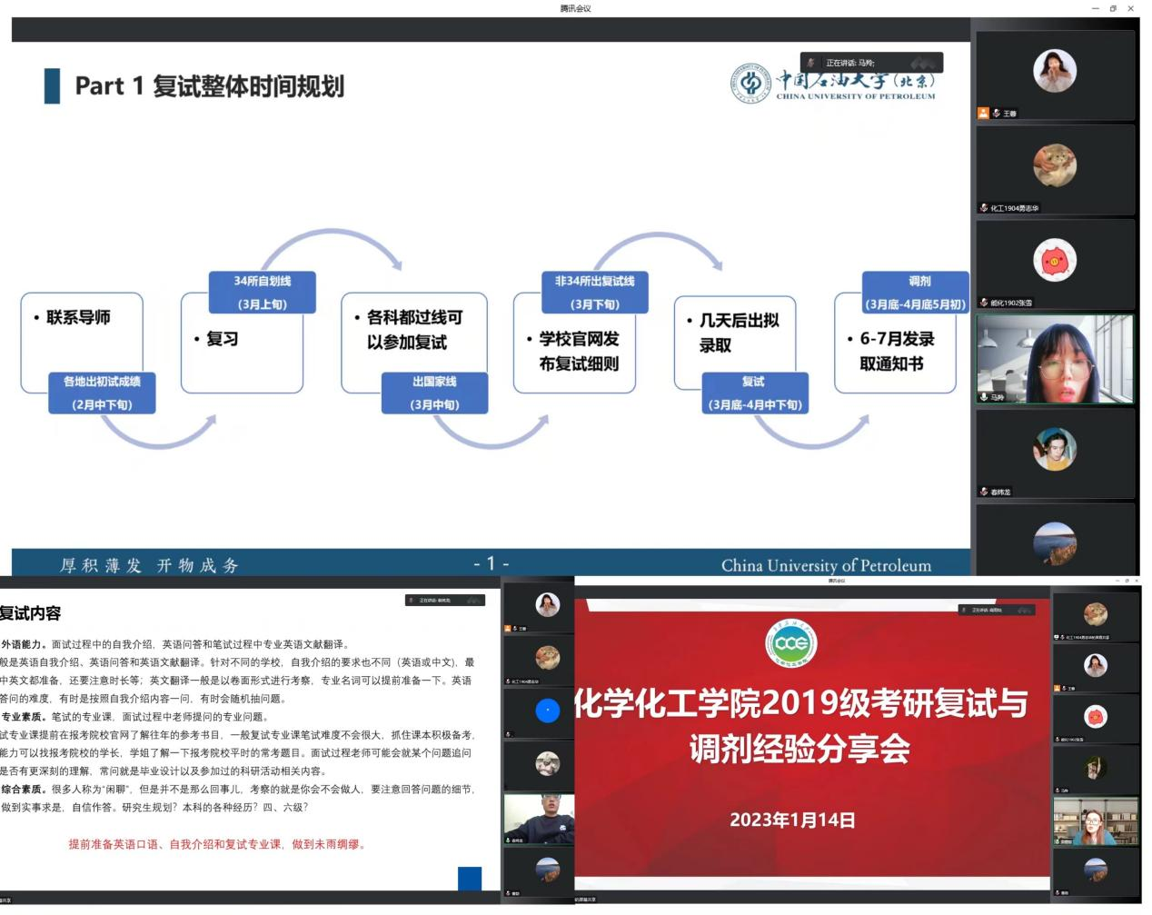 2022屆畢業(yè)生代表分享了他們在研究生復(fù)試方面的經(jīng)驗和做法。就讀于西北大學(xué)的碩士研究生春煒龍同學(xué)為大家梳理了西北大學(xué)研究復(fù)試的相關(guān)流程和需要注意的事項。對于復(fù)試過程中的筆試部分該如何準(zhǔn)備,綜合面試部分應(yīng)該注意的問題以及導(dǎo)師的選擇進行了具體的經(jīng)驗分享。就讀于中國石油大學(xué)(北京)的研究生馬羚同學(xué)根據(jù)自己參加復(fù)試的親身體會,為大家梳理了復(fù)試流程,她鼓勵大家要在考研復(fù)試的過程中樹立自信心,做好專業(yè)知識的儲備,并強調(diào)要重視復(fù)試中英語口語和專業(yè)英語的準(zhǔn)備,以飽滿的熱情和積極地心態(tài)面對研究生復(fù)試。西安石油大學(xué)研究生高雨如同學(xué)主要分享了初試成績查詢以后需要進行的準(zhǔn)備,如查詢往年報考院校的復(fù)試線、去官網(wǎng)查詢心儀導(dǎo)師的聯(lián)系方式并聯(lián)系導(dǎo)師、收集復(fù)試材料、了解綜合面試環(huán)節(jié)的相關(guān)問題,提前準(zhǔn)備好自我介紹等。
