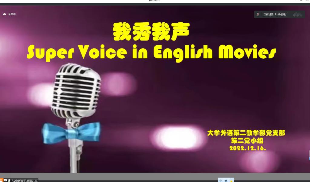 為提升大學(xué)生英語口語水平,豐富校園文化生活,由外國語學(xué)院大學(xué)外語第二教學(xué)部黨支部主辦,支部第二黨小組承辦的英語新起點加油站線上系列活動(第二期)“我秀我聲——2022級英語電影配音大賽”于2022年12月16日晚7:30通過騰訊會議平臺如期舉行。外國語學(xué)院副院長陳武,大學(xué)外語第二教學(xué)部黨支部書記李紅,大學(xué)外語第二教學(xué)部副主任武絨,支部黨員教師及部分2022級同學(xué)出席并觀看了此次配音大賽。