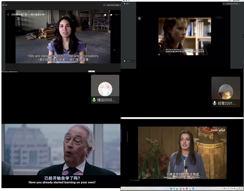 大賽以英語電影為載體,進行了五分鐘內(nèi)的英語電影選段配音。通過為期2個月的初賽選拔,經(jīng)大學(xué)英語教師推薦、初評,最終14位同學(xué)脫穎而出進入決賽。“臺上三分鐘,臺下十年功?!?同學(xué)們對自己的作品反復(fù)打磨,精益求精,充分體現(xiàn)作品內(nèi)涵,模仿語音語調(diào),克服了當前疫情的影響,多次彩排適應(yīng)了線上比賽的節(jié)奏,給大家呈現(xiàn)了一場聽覺盛宴。同學(xué)們氣定神閑、語音純正,一個個精彩的演繹把現(xiàn)場師生們帶入不同的場景里,“聲”臨其境體驗英語口語魅力。最終,張莎悅同學(xué)獲得一等獎,戴傳裕和耿瑜璐同學(xué)獲得二等獎,楊盛凱、林資忻等11位同學(xué)獲得三等獎和優(yōu)秀獎。