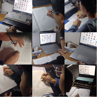 從考試前的試音工作開始,每位同學(xué)都能迅速的調(diào)整狀態(tài),并向主持人及時反映試音問題??荚囘^程中,由各班學(xué)委負(fù)責(zé),以宿舍為單位,互相監(jiān)督互相促進(jìn),營造良好的答題氛圍。即使是在線上舉辦,每一位參與考試的同學(xué)都依舊認(rèn)真嚴(yán)肅的對待,努力發(fā)揮出最好水平。