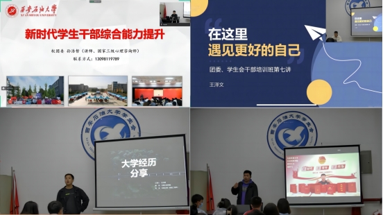 校團(tuán)委副書記孫浩哲,干事李政、王澤文,分別以《新時(shí)代學(xué)生干部綜合能力的提升》《學(xué)生干部溝通交流的技巧》《在這里,遇見更好的自己》為題進(jìn)行了講解。優(yōu)秀學(xué)生代表姬祥飛、王志超和李紀(jì)新,分別結(jié)合自身學(xué)習(xí)工作、科技創(chuàng)新、社會實(shí)踐、志愿服務(wù)等方面進(jìn)行了交流與分享。