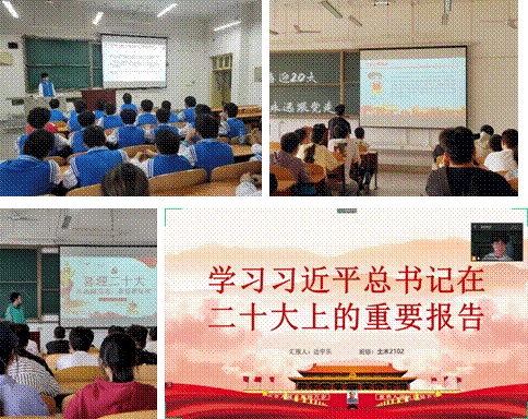 三是主題班會“學”:按照《關于開展主題班會教育工作的通知》文件要求,各班積極組織以“青春獻禮二十大,強國有我新征程”為主題的班會,同學們紛紛表示堅決弘揚偉大建黨精神,自信自強、守正創(chuàng)新,踔厲奮發(fā)、勇毅前行,為全面建設社會主義現(xiàn)代化國家、全面推進中華民族偉大復興而團結奮斗,為加強班級建設統(tǒng)一了思想認識。
