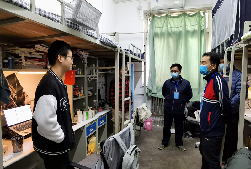 走訪中,學院領導、碩士研究生導師及輔導員與學生親切交談,深入了解疫情防控期間學生的學習、生活、思想及心理健康狀況,同時傳達了學校疫情防控要求,鼓勵大家樹立大局觀念,齊心協(xié)力,早日戰(zhàn)勝疫情。在看望每間宿舍同學的過程中,王魁生院長叮囑2020級研究生要多投簡歷,多參加面試,學習面試經驗,并且也強調鑒于目前對畢業(yè)論文審核較為嚴格,要求同學們在求職期間也要兼顧學位論文的撰寫工作,確保在規(guī)定期限內高質量完成學位論文。同時他還囑咐2021級研究生要勞逸結合,掌握科學的學習方法,合理安排作息時間,閑暇之余多參加體育鍛煉,多參加學科競賽,提高自己的技能。張留美副院長提醒同學們要嚴格遵守學校疫情防控規(guī)定和要求,有困難第一時間跟老師、學院領導溝通,學院將全心全意為同學們做好服務和保障工作。