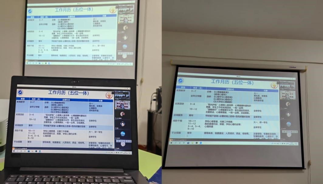 會(huì)上,肖瓊教授首先介紹了學(xué)生心理成長指導(dǎo)中心的發(fā)展歷程和文化理念,我校心理育人工作的基本任務(wù)、隊(duì)伍構(gòu)成、宣傳平臺(tái)、工作特色和“學(xué)校---院系---班級(jí)---生活園區(qū)---師生個(gè)體”五級(jí)心理健康教育暨心理危機(jī)預(yù)警防控體系。