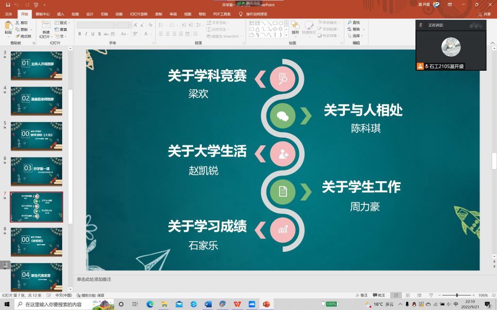 為教育引導(dǎo)廣大青年學(xué)子將青春融入國家之中,并幫助新生盡快適應(yīng)大學(xué)生活,石油工程學(xué)院于9月18日晚上開展線上“開學(xué)第一課”主題團(tuán)日活動。學(xué)院黨委副書記張建高、全體輔導(dǎo)員、高年級學(xué)長學(xué)姐代表及2022級新生參與本次活動。