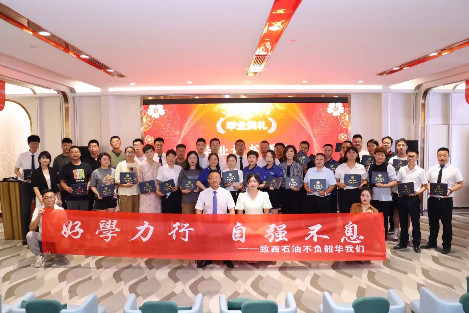 7月15日上午,西安石油大學烏魯木齊西華管理教育培訓中心函授站2022屆高等學歷繼續(xù)教育畢業(yè)典禮在烏魯木齊美居大都會售樓中心隆重舉行。西安石油大學繼續(xù)教育學院院長談建勤發(fā)表線上畢業(yè)寄語,函授站主任何玉娟、學生單位領導代表唐輝出席畢業(yè)典禮。