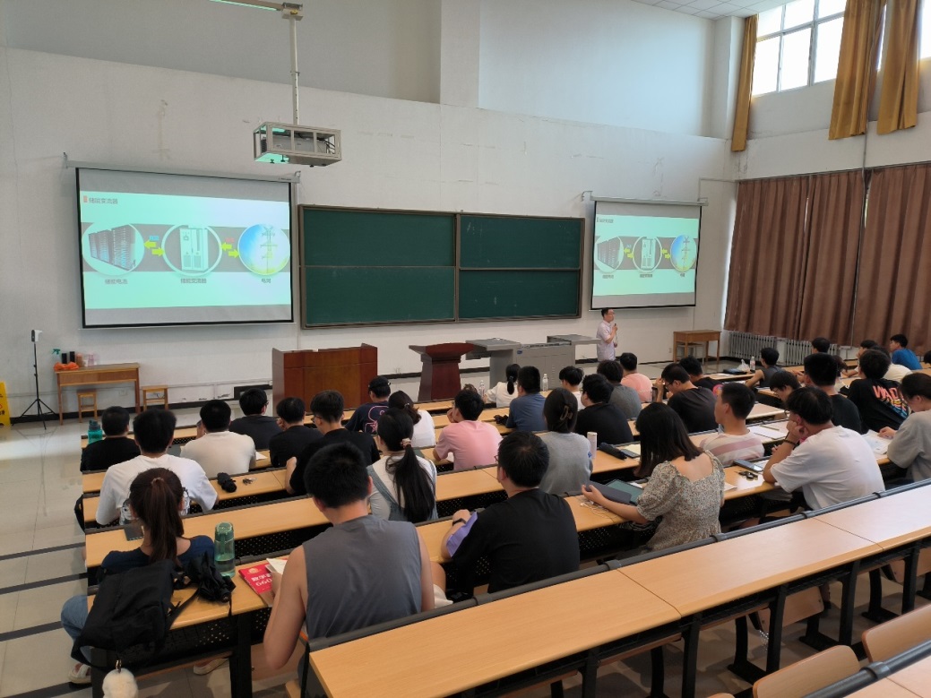 張永強副院長相繼作了“鋰離子電池的制備工藝”“燃料電池結(jié)構(gòu)與功能”“四種電解水制氫技術(shù)方案回顧與展望”3個主題報告,極大地豐富了學(xué)生的新能源領(lǐng)域知識,提高了學(xué)生們對新能源材料與器件專業(yè)實際生產(chǎn)過程的興趣,拓寬了學(xué)生的專業(yè)視野。